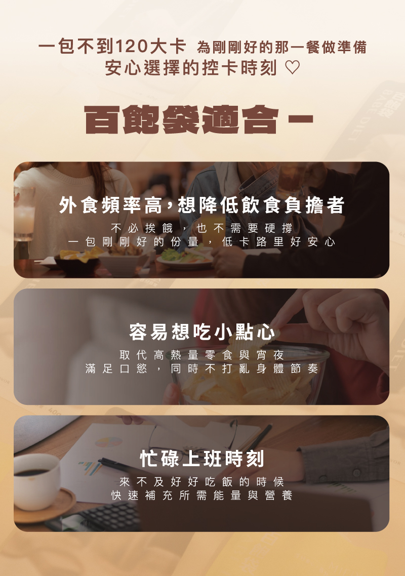▸一包不到 120 大卡,安心選擇的控卡時刻