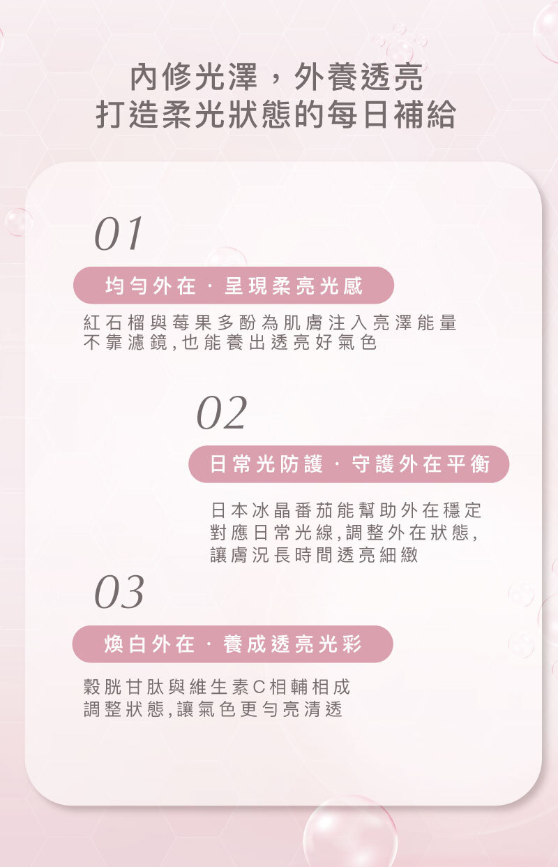對應日常光線,調整外在狀態,讓膚況長時間透亮細緻